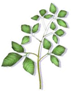 - Each group of leaves has a main middle leaf with a distinct stem and two side leaflets attached to the main leaf stem.