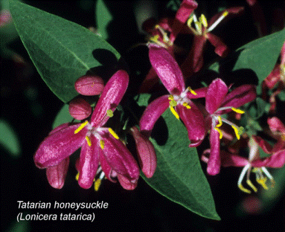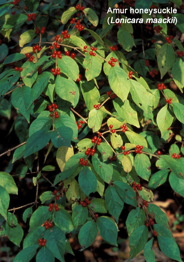 Exotic bush honeysuckles, brought here for landscaping and erosion control, are highly invasive, rapidly overtaking a site, forming a dense shrub layer that crowds and shades out native plant species. While their fruits are rich in carbohydrates, they don’t contain the the high-fat, nutrient-rich food sources of our native berries that are needed by migrating birds.