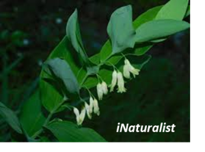![]() True Solomon’s Seal: Native; common, found in moist woodlands; note flowers hang below stem; several varieties: dark blue to black berries. |
